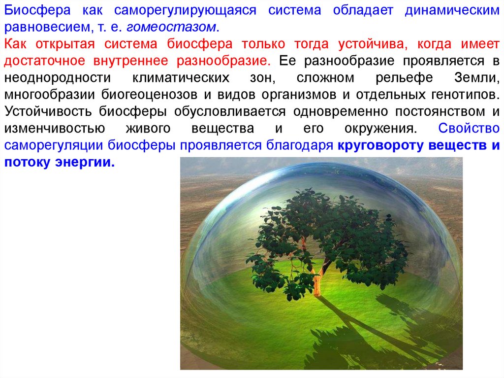 Биосфера как саморегулирующаяся система обладает динамическимравновесием, т. е. гомеостазом.