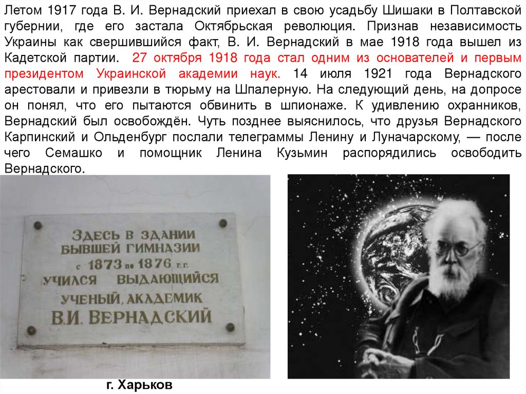 Украины как свершившийся факт, В. И. Вернадский в мае 1918 года вышел из