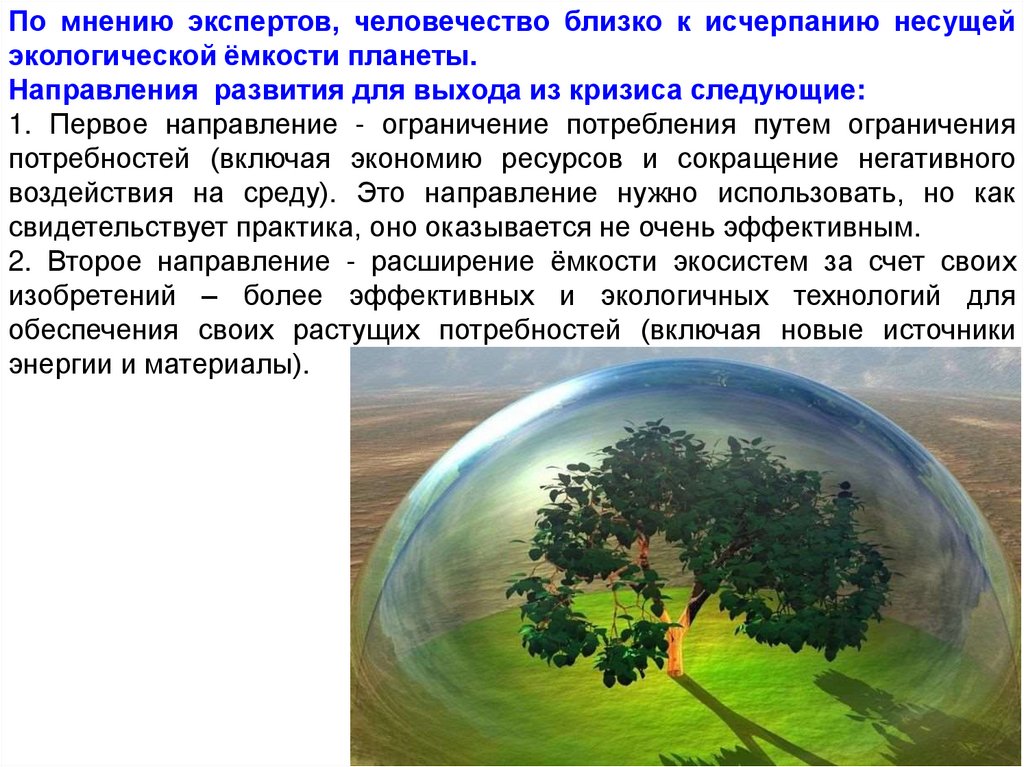 По мнению экспертов, человечество близко к исчерпанию несущейэкологической ёмкости планеты.