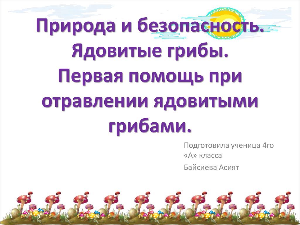 1. Природа и безопасность. Ядовитые грибы. Первая помощь при отравлении ядовитыми грибами.