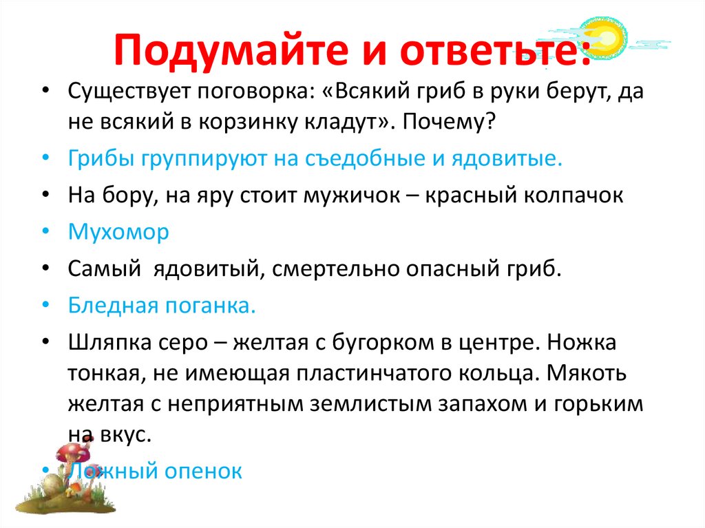 • Существует поговорка: «Всякий гриб в руки берут, дане всякий в корзинку кладут». Почему?