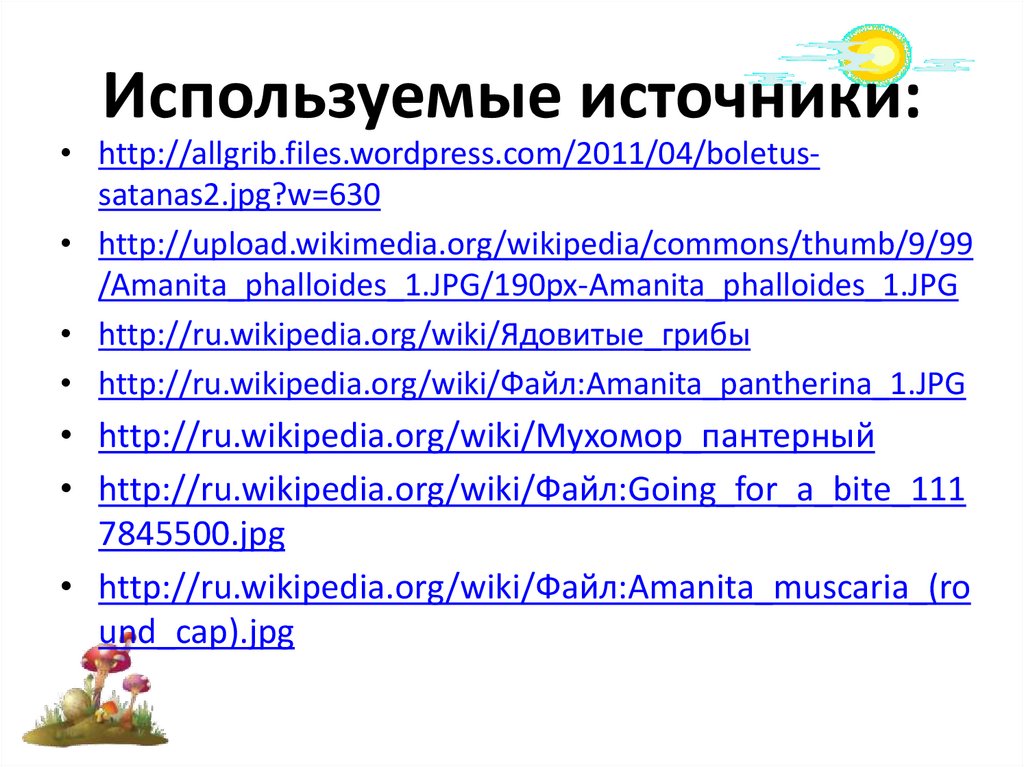 • http://ru.wikipedia.org/wiki/Ядовитые_грибы