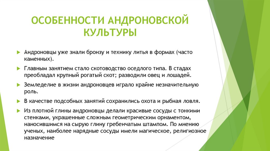 12. ОСОБЕННОСТИ АНДРОНОВСКОЙ КУЛЬТУРЫ