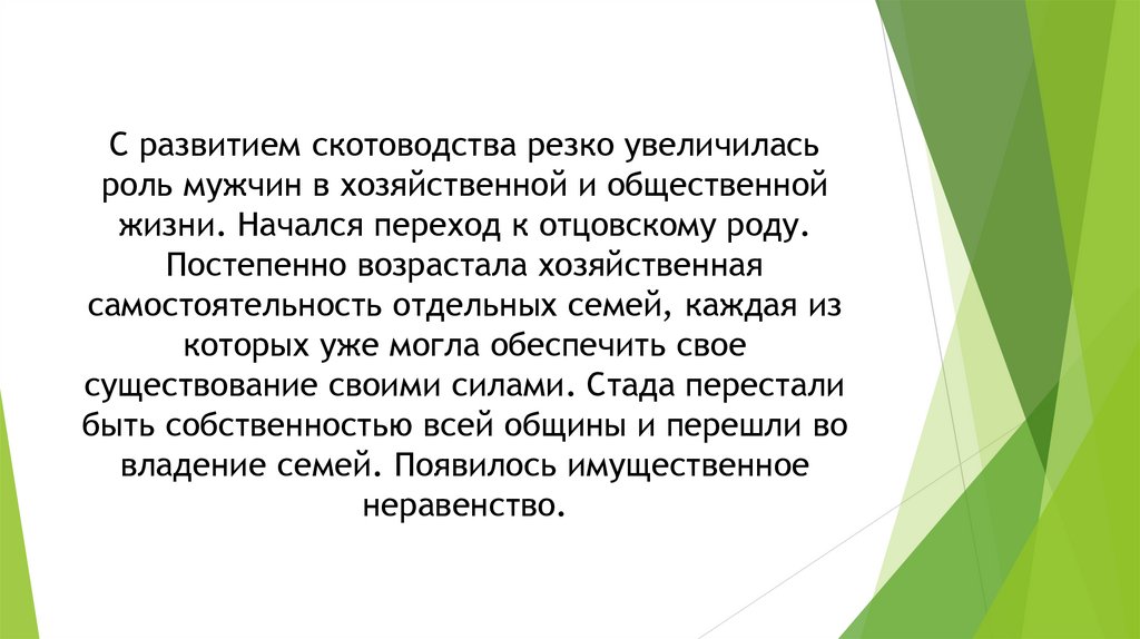 Возросла хозяйственная самостоятельность отдельных семей, утвердилась