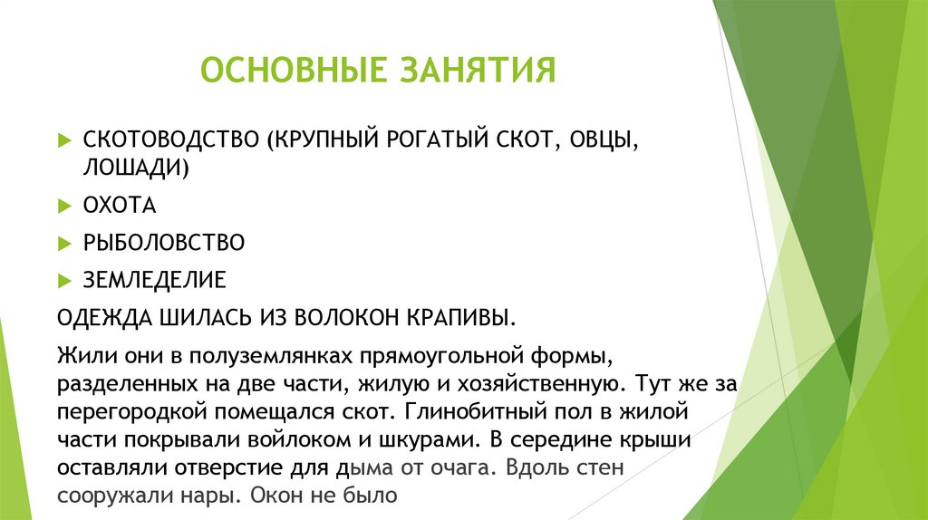 свидетельствуют, что население в это время занималось полукочевым скотоводством. Зимой
