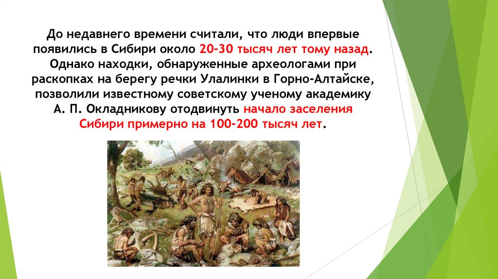 До недавнего времени считали, что люди впервыепоявились в Сибири около 20-30 тысяч лет тому назад.