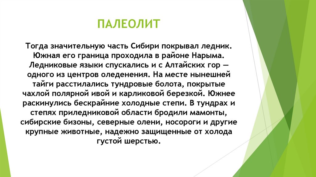 Тогда значительную часть Сибири покрывал ледник.Южная его граница проходила в районе Нарыма.