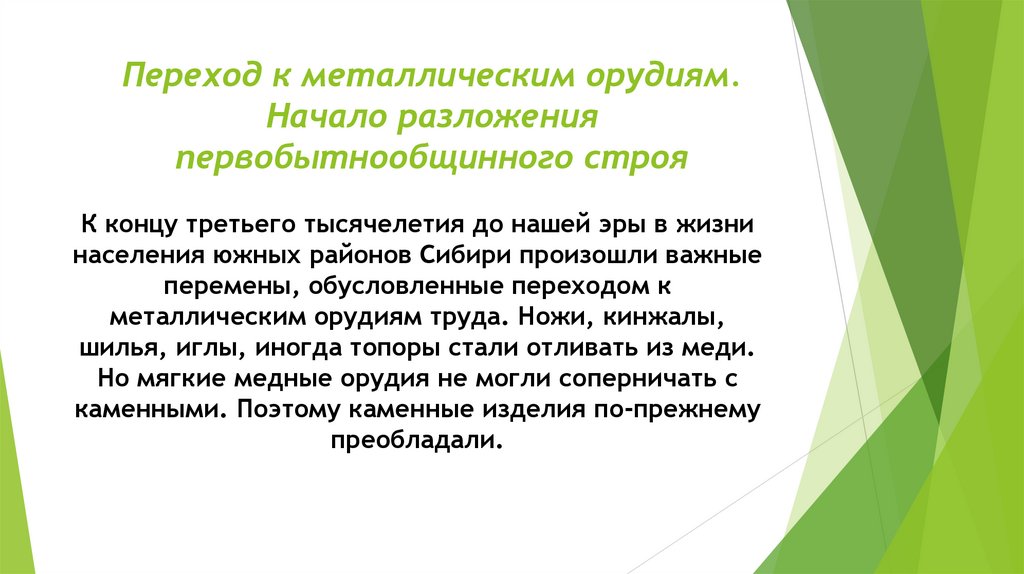 10. Переход к металлическим орудиям. Начало разложения первобытнообщинного строя