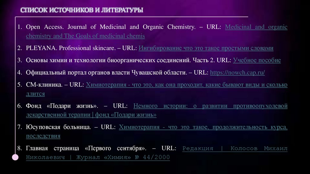 СПИСОК ИСТОЧНИКОВ И ЛИТЕРАТУРЫ1. Open Access. Journal of Medicinal and Organic Chemistry. – URL: Medicinal and organic