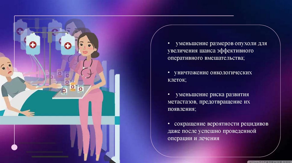 • уменьшение размеров опухоли дляувеличения шанса эффективного