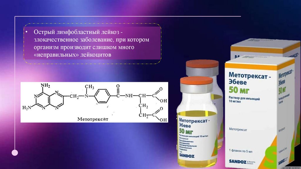 • Острый лимфобластный лейкоз злокачественное заболевание, при котороморганизм производит слишком много