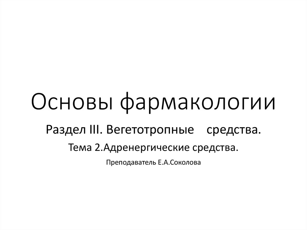 Раздел III. Вегетотропные средства.Тема 2.Адренергические средства.