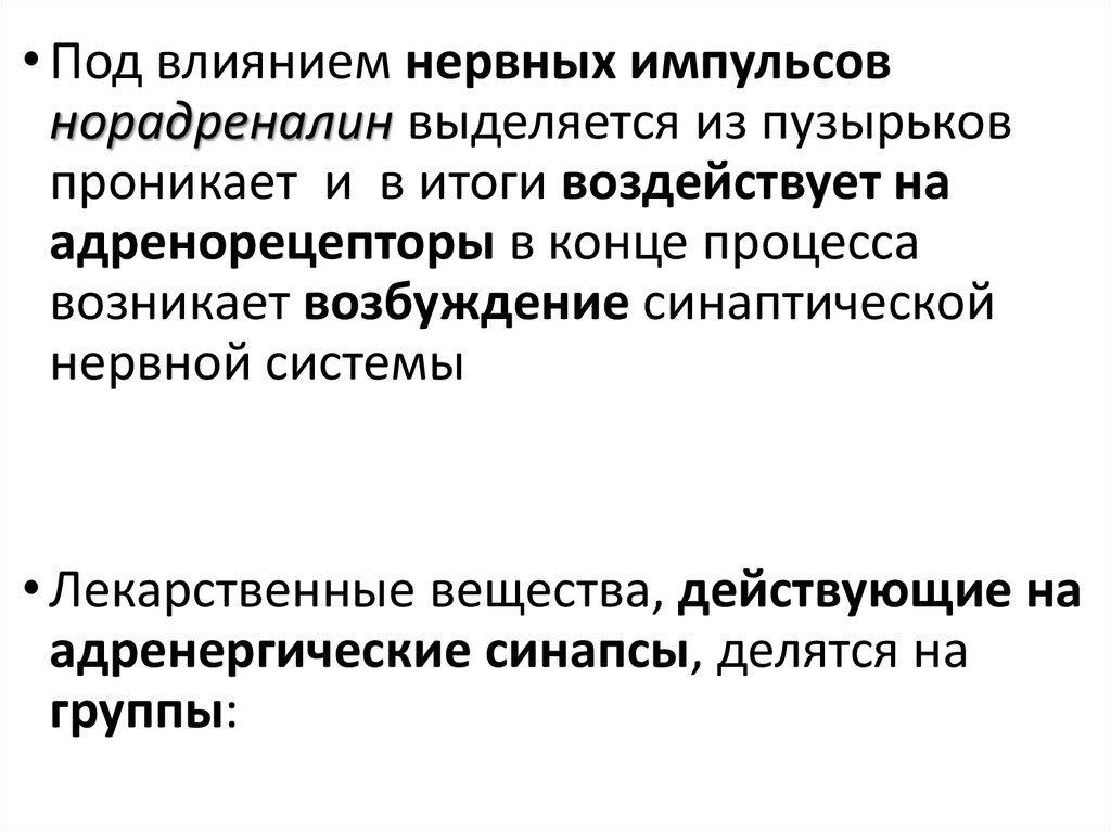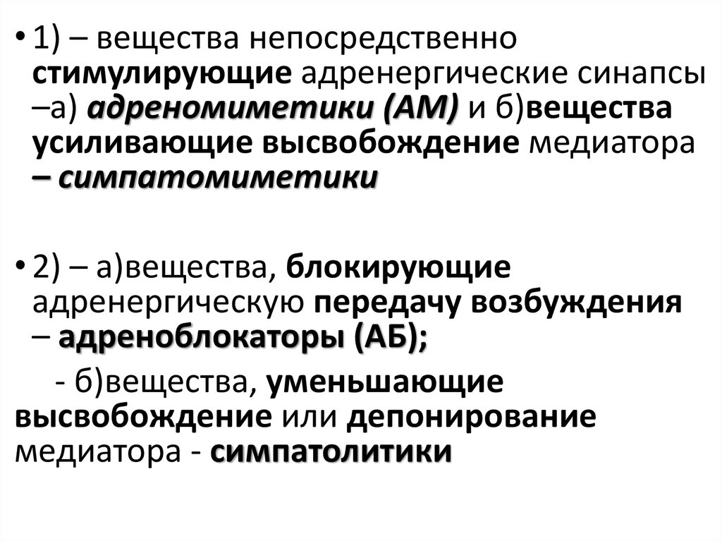 • 1) – вещества непосредственностимулирующие адренергические синапсы