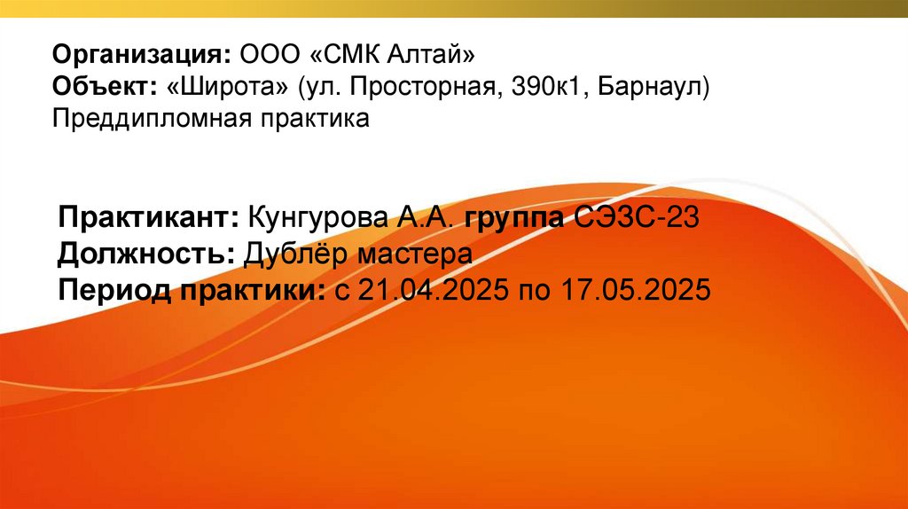 Практикант: Кунгурова А.А. группа СЭЗС-23