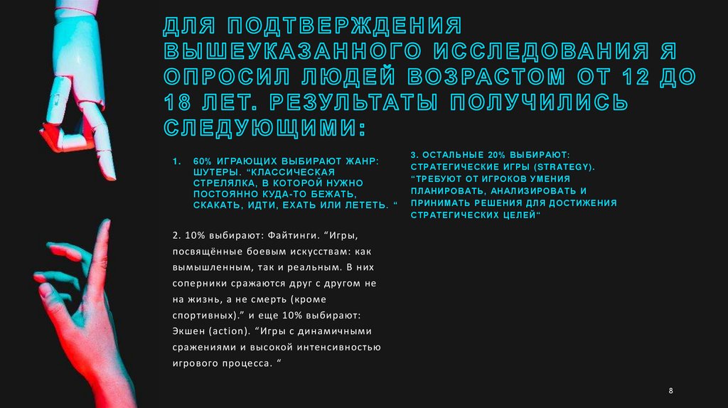 8. Для подтверждения вышеуказанного исследования я опросил людей возрастом от 12 до 18 лет. Результаты получились следующими: