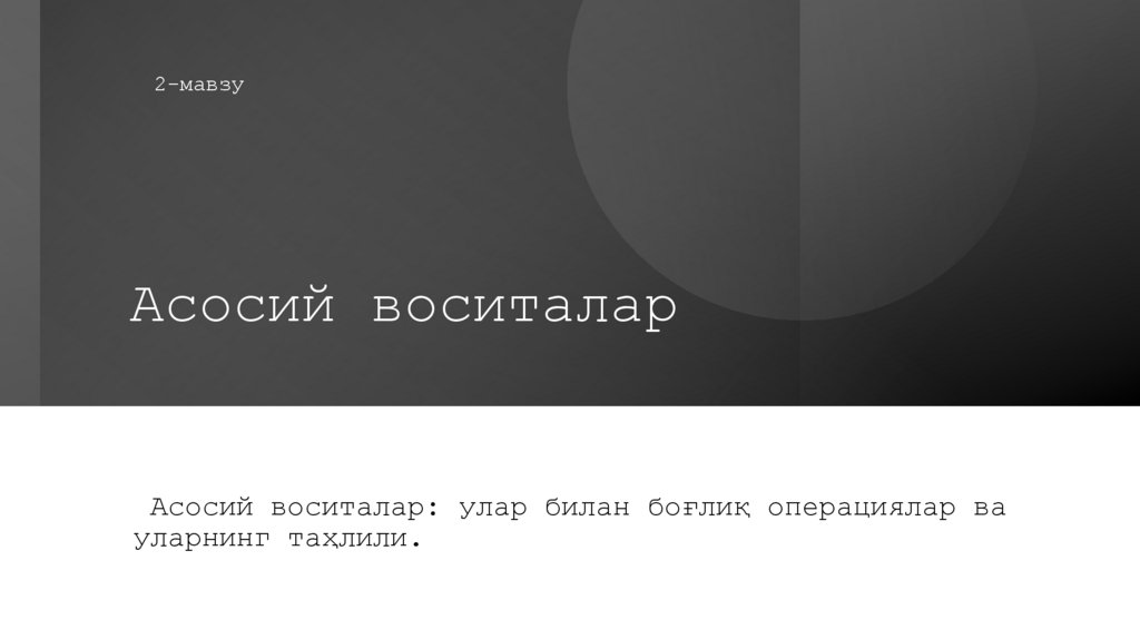 Асосий воситалар: улар билан боғлиқ операциялар ва