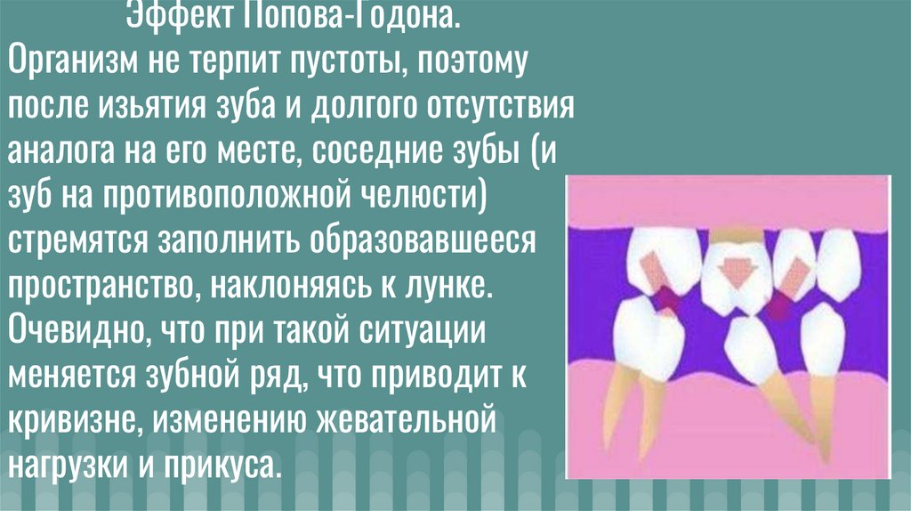 Эффект Попова-Годона.Организм не терпит пустоты, поэтому