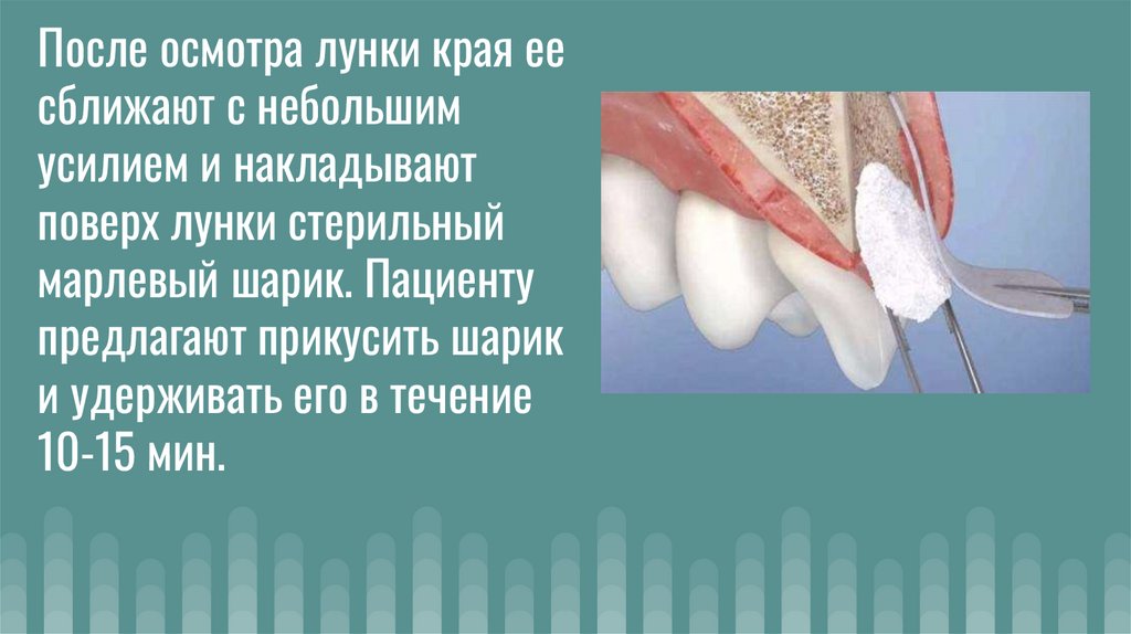 После осмотра лунки края еесближают с небольшим