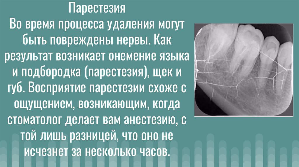 ПарестезияВо время процесса удаления могут