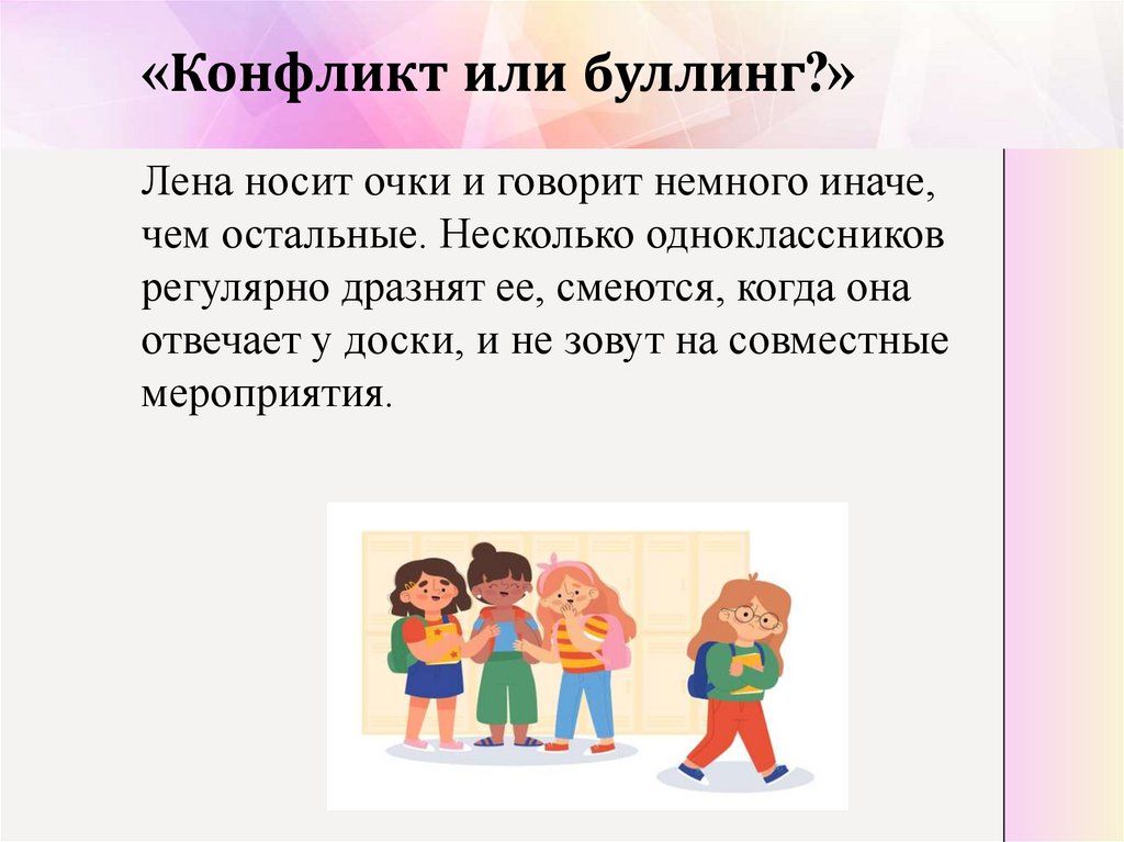 «Конфликт или буллинг?»Лена носит очки и говорит немного иначе,