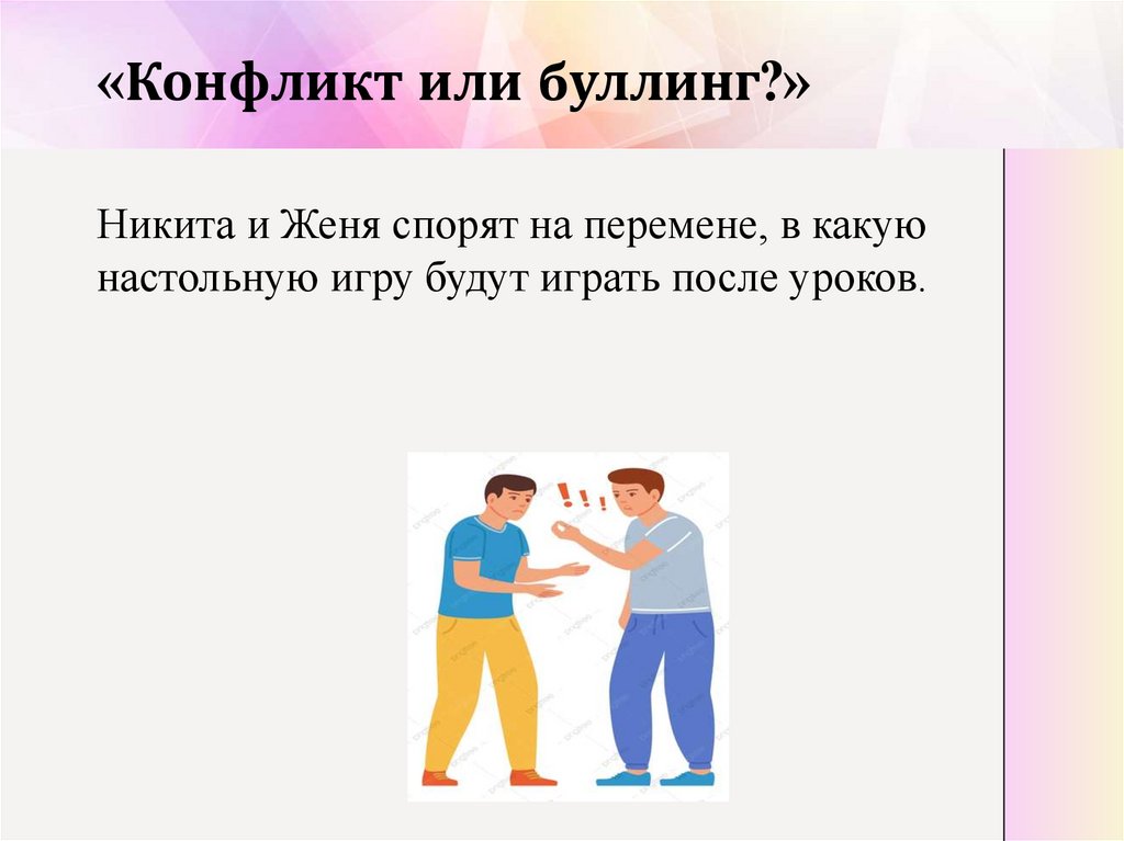 «Конфликт или буллинг?»Никита и Женя спорят на перемене, в какую