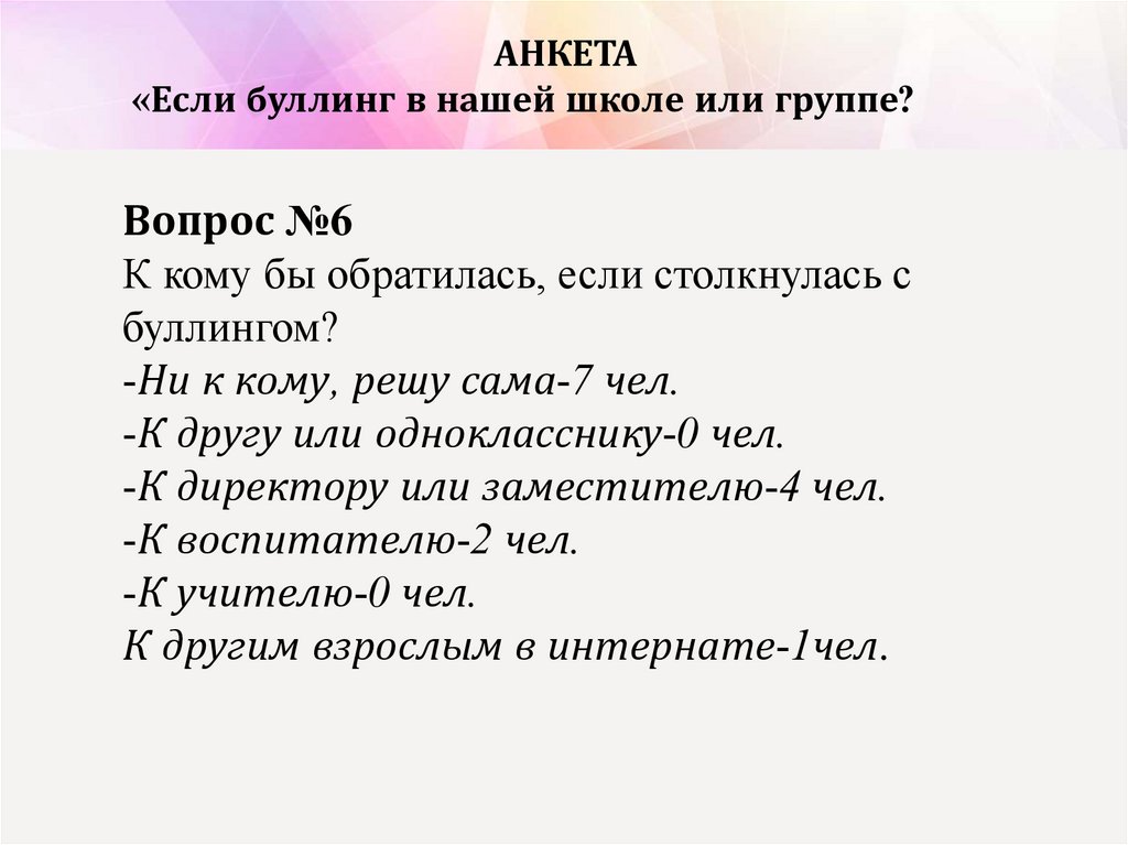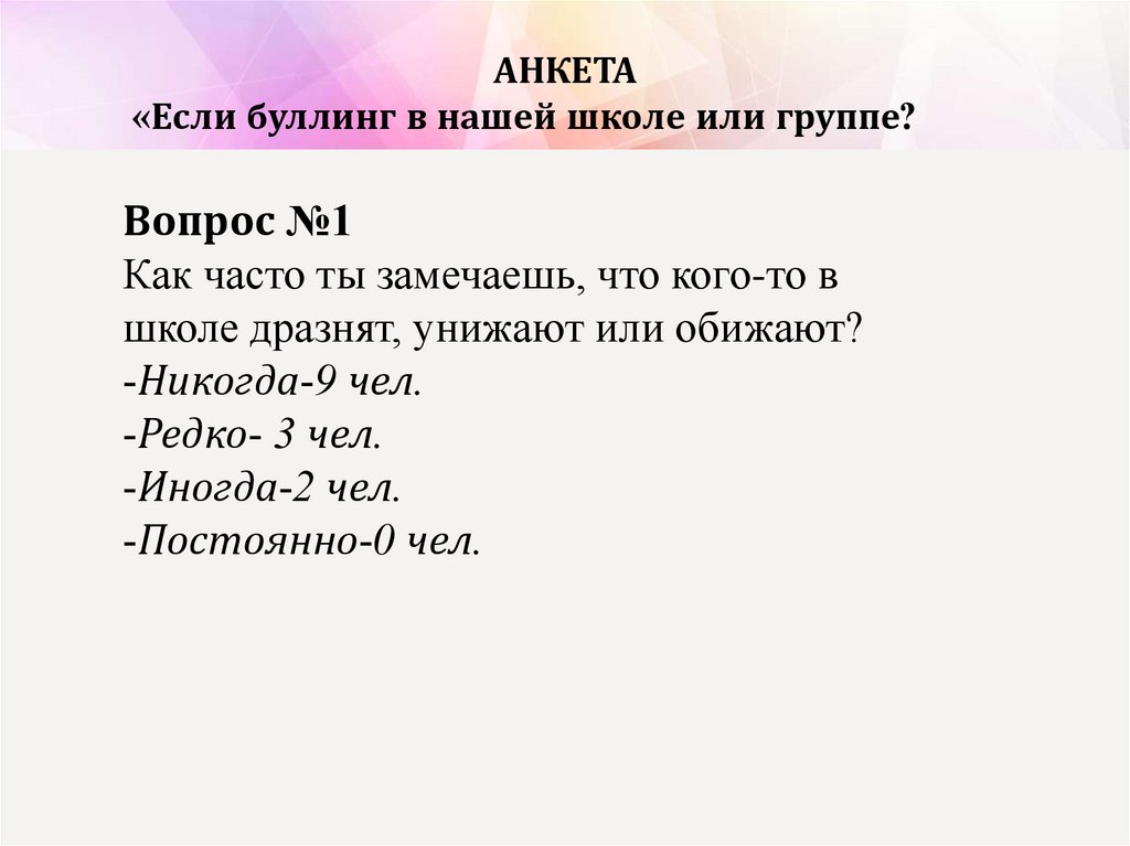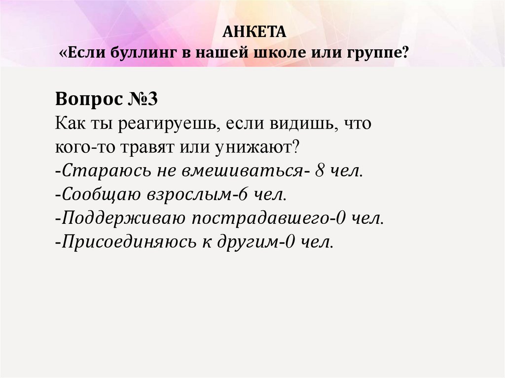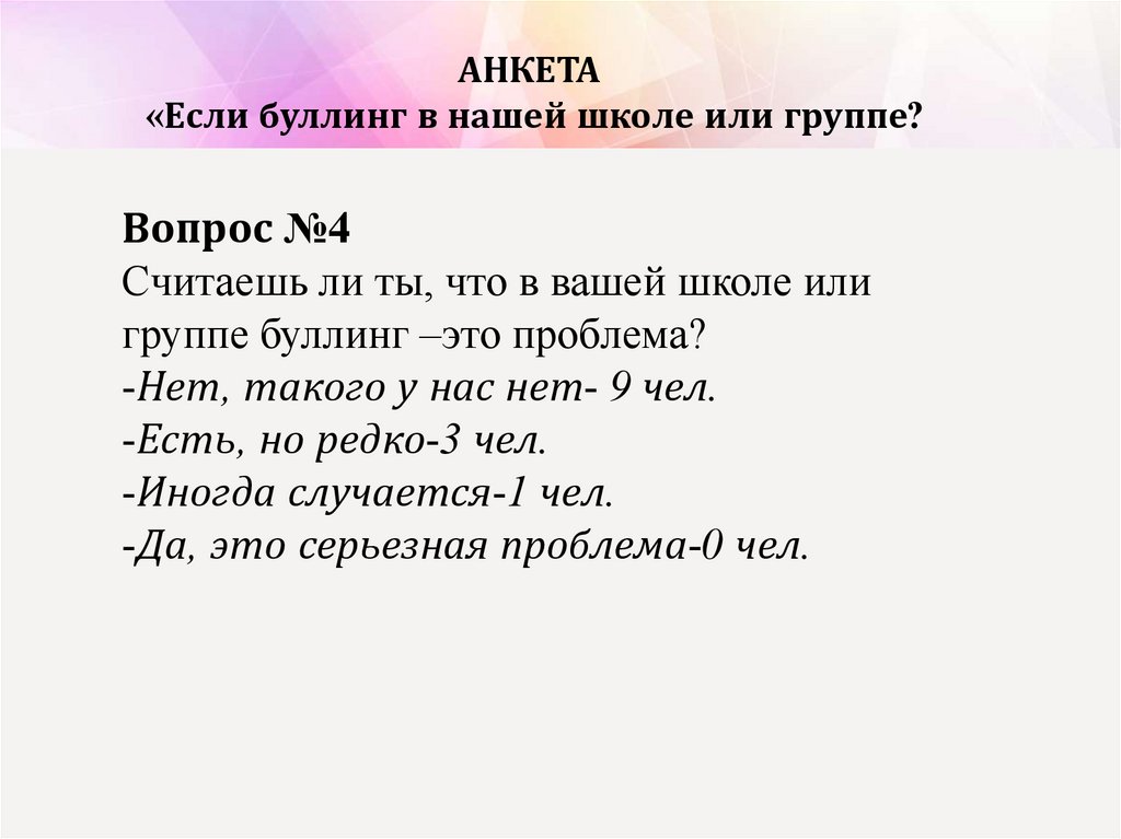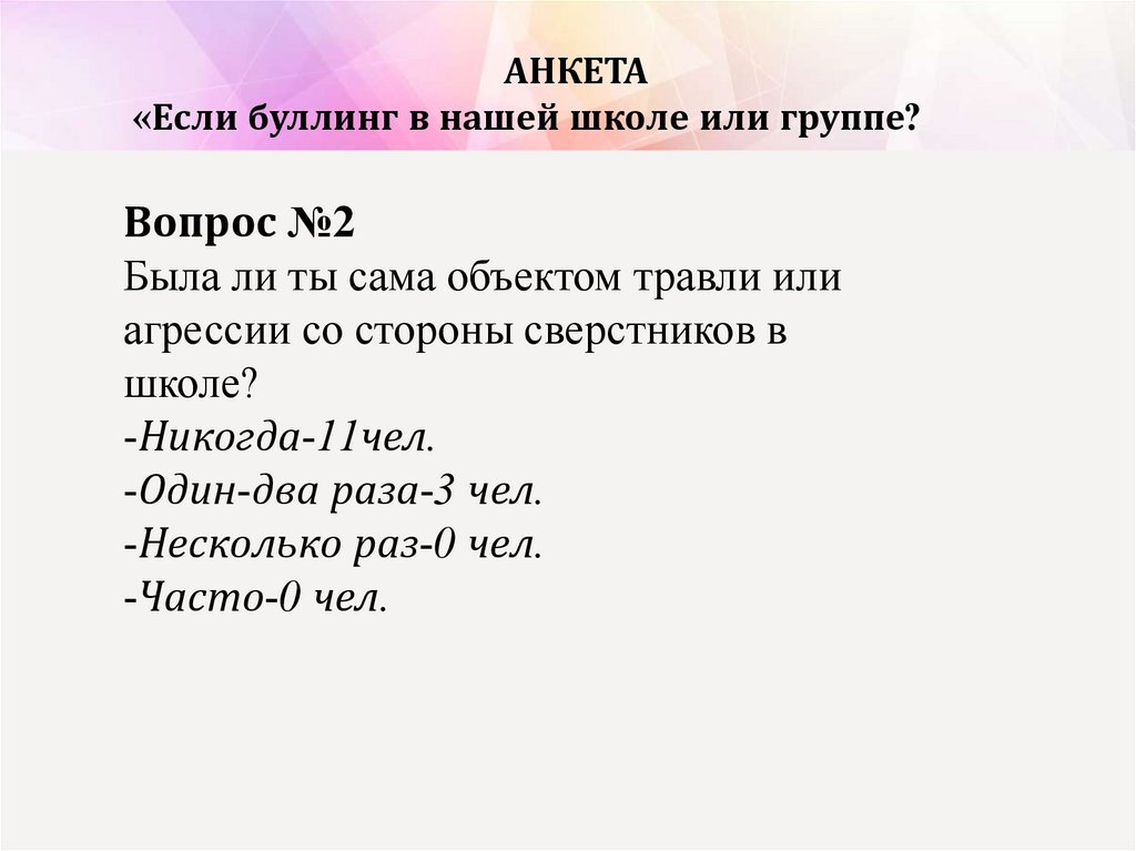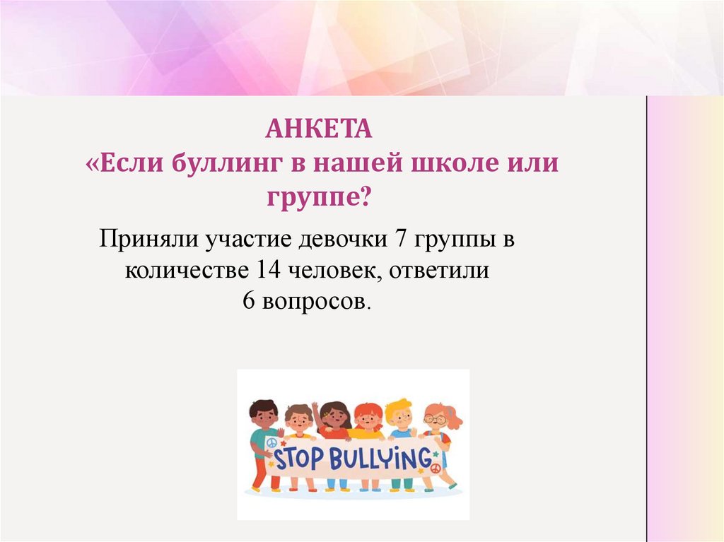 АНКЕТА«Если буллинг в нашей школе или группе?
