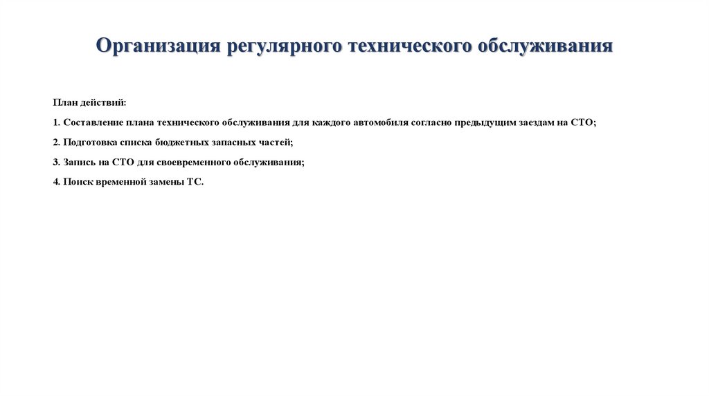 1. Составление плана технического обслуживания для каждого автомобиля согласно предыдущим заездам на СТО;