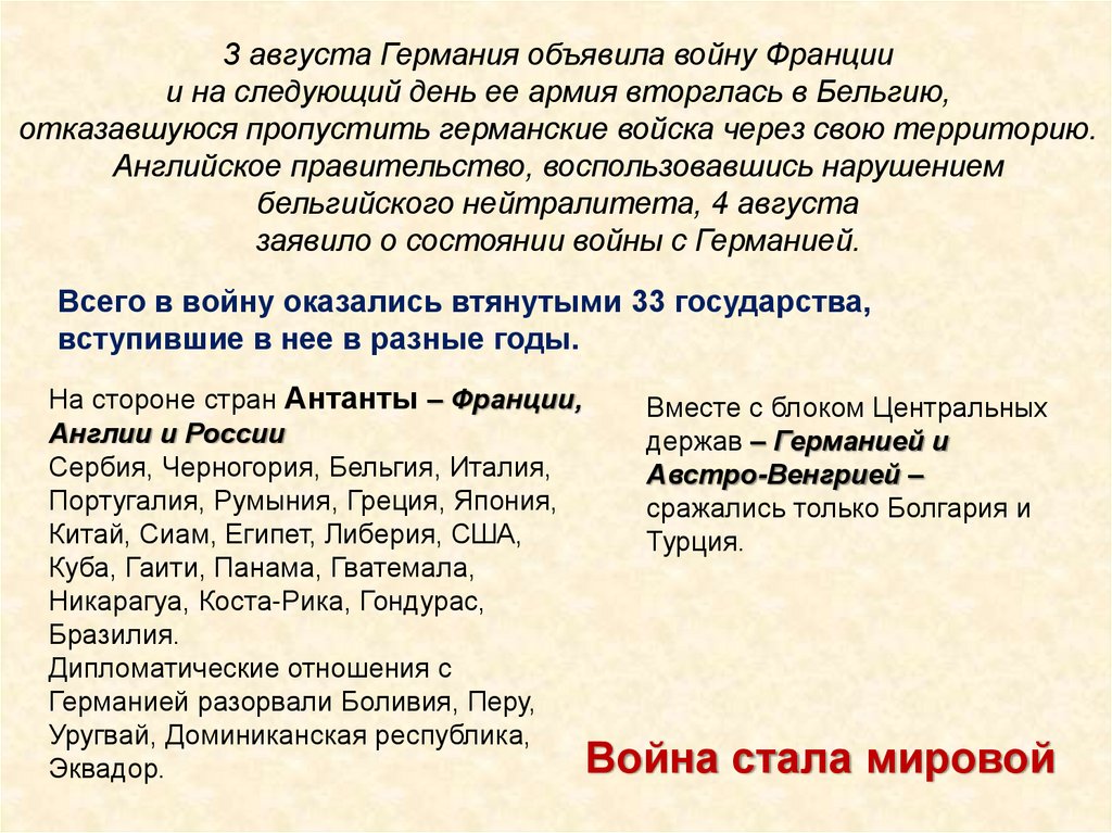 Россией(1907). В ходе войны к нему присоединились(Италия, Япония,