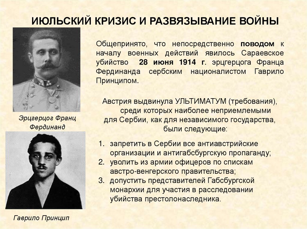 1914г. австрийского наследника эрцгерцога Франца Фердинанда в Сараево.