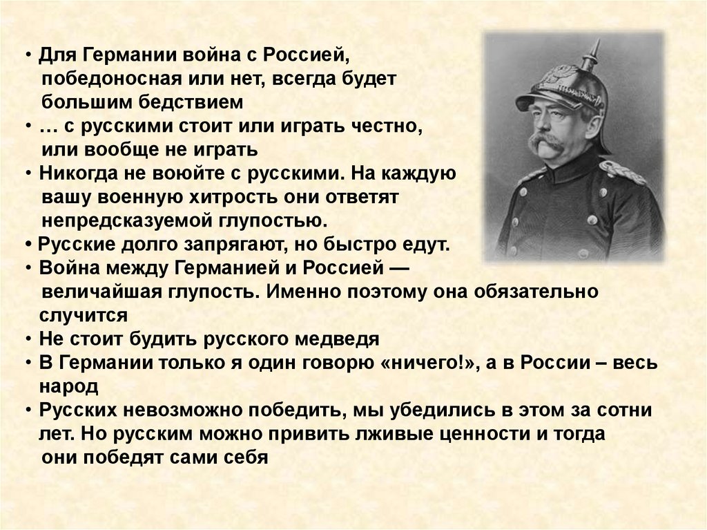 • Для Германии война с Россией,победоносная или нет, всегда будет