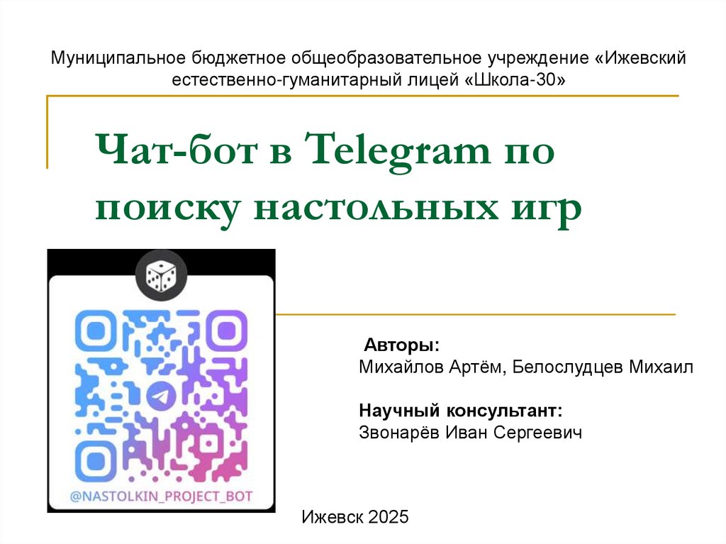 1. Чат-бот в Telegram –рекомендательная система настольных игр