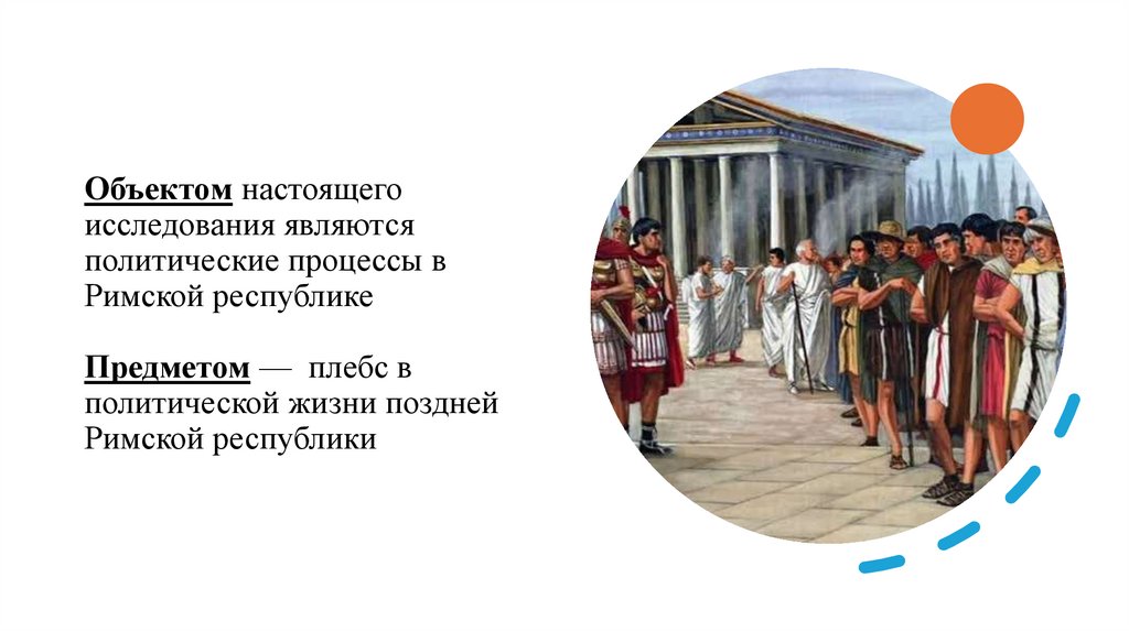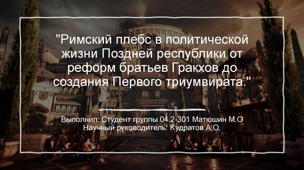 1. "Римский плебс в политической жизни Поздней республики от реформ братьев Гракхов до создания Первого триумвирата."