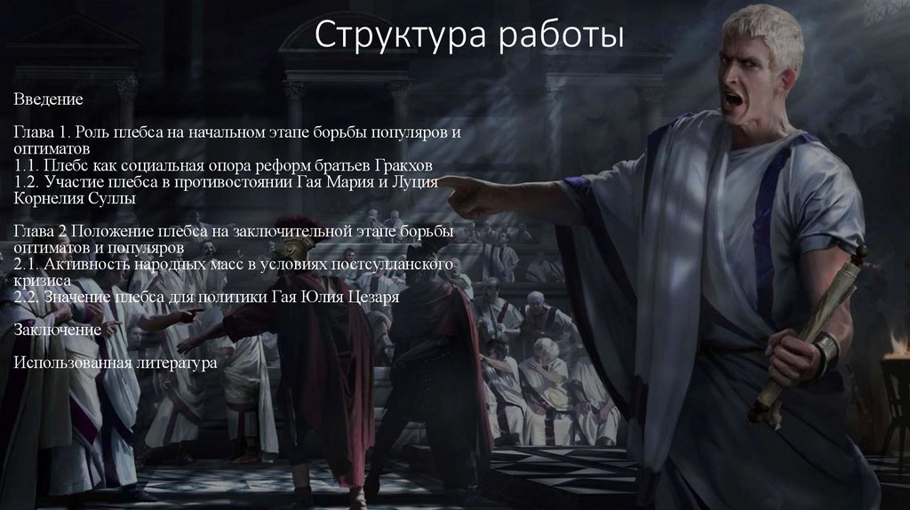 Цель работы — определить влияние плебса на ход политических процессов вРиме от реформ братьев Гракхов до создания Первого триумвирата.