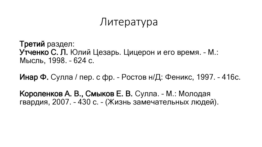 Третий раздел:Утченко С. Л. Юлий Цезарь. Цицерон и его время. – М.: