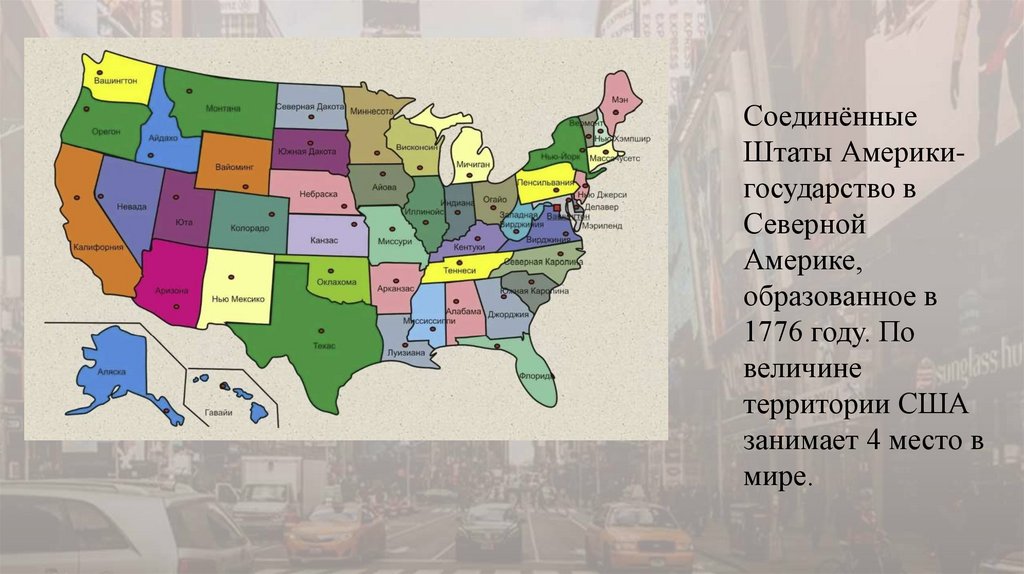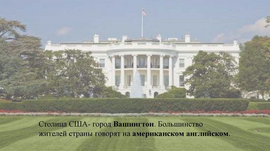 Столица США- город Вашингтон. Большинствожителей страны говорят на американском английском.