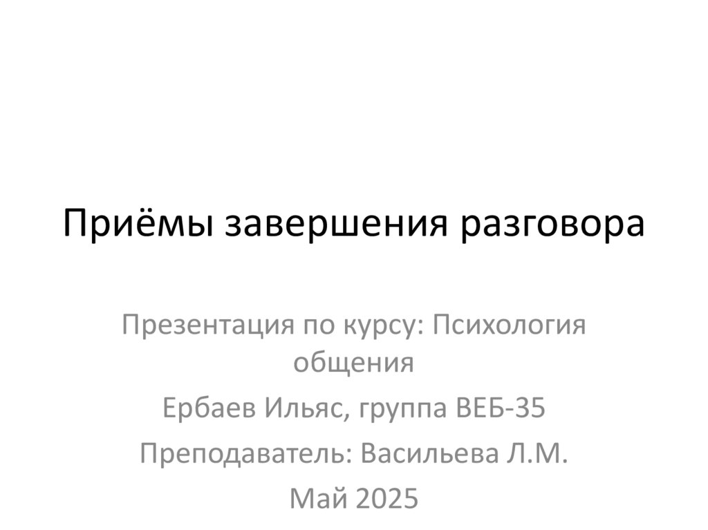 Приёмы завершения разговораПрезентация по курсу: Психология