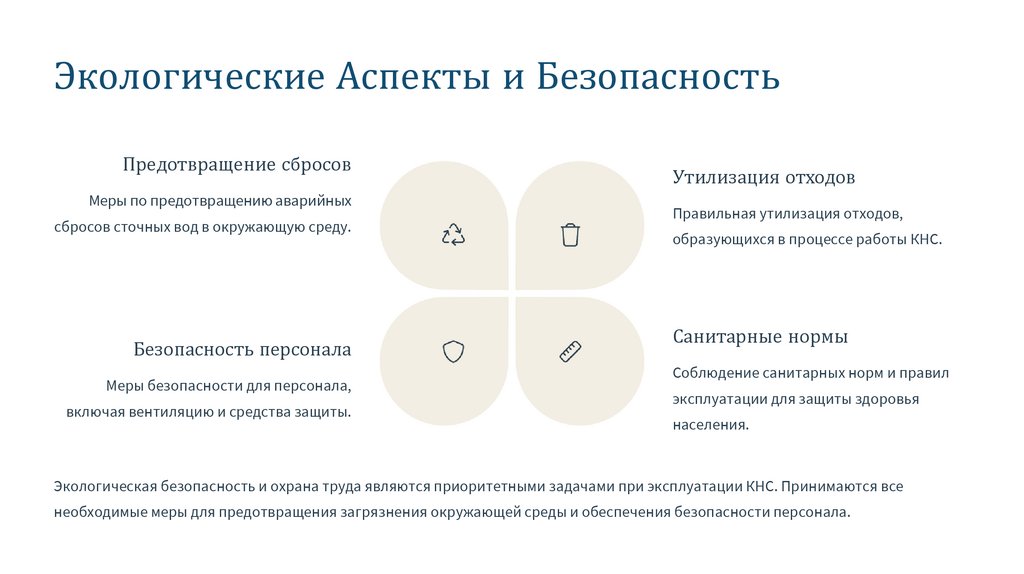 Экологическая безопасность и охрана труда являются приоритетными задачами при эксплуатации КНС. Принимаются все