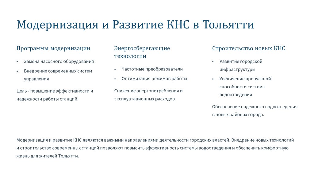 Модернизация и Развитие КНС в ТольяттиПрограммы модернизации