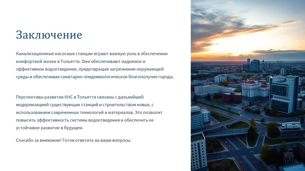 КНС играют важную роль в обеспечении комфорта и безопасности жителей Тольятти.