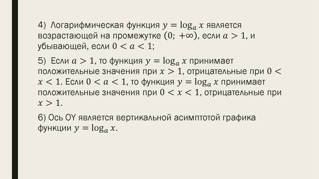 Логарифмическая функция, свойства и график