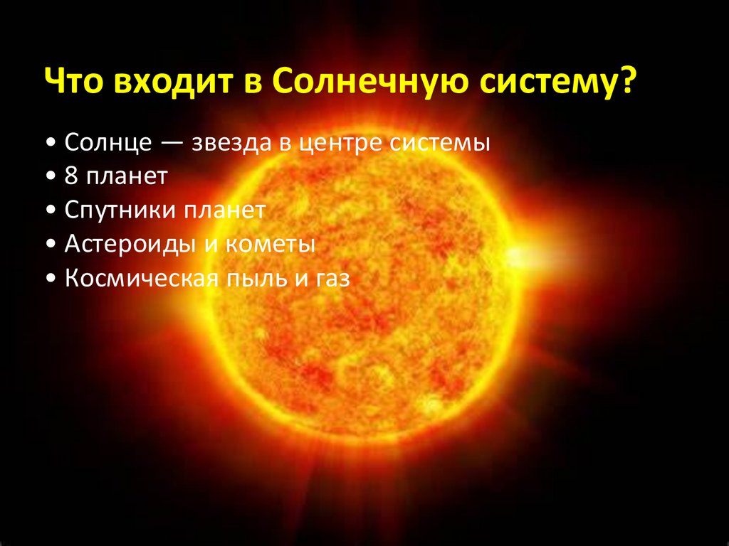 Что входит в Солнечную систему?• Солнце — звезда в центре системы
