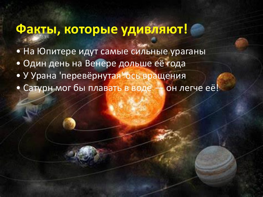 Факты, которые удивляют!• На Юпитере идут самые сильные ураганы