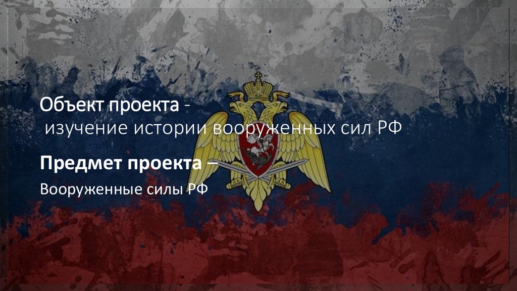Объект проекта изучение истории вооруженных сил РФПредмет проекта –