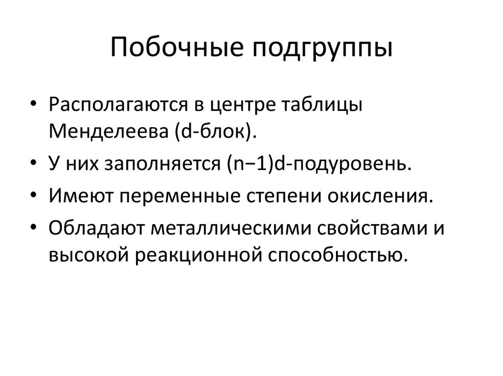 Побочные подгруппы• Располагаются в центре таблицы