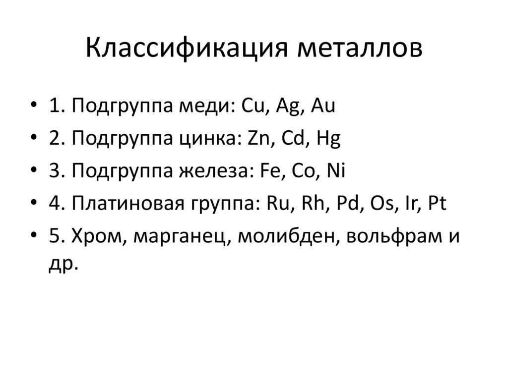 • 3. Классификация металлов побочных