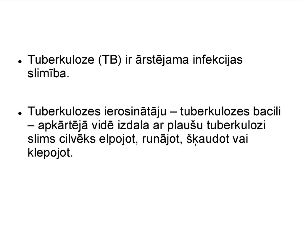 Tuberkuloze (TB) ir ārstējama infekcijasslimība.