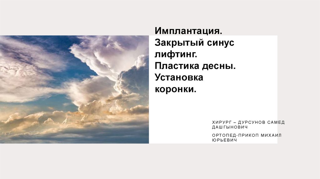 1. Имплантация. Закрытый синус лифтинг. Пластика десны. Установка коронки.