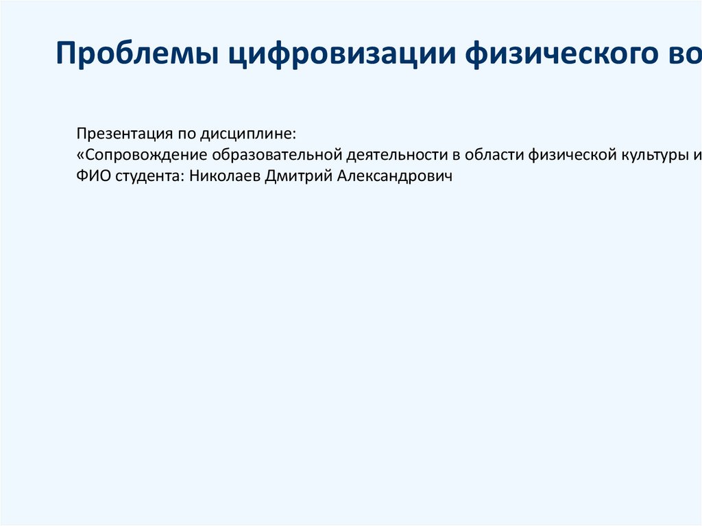 Проблемы цифровизации физического воПрезентация по дисциплине: