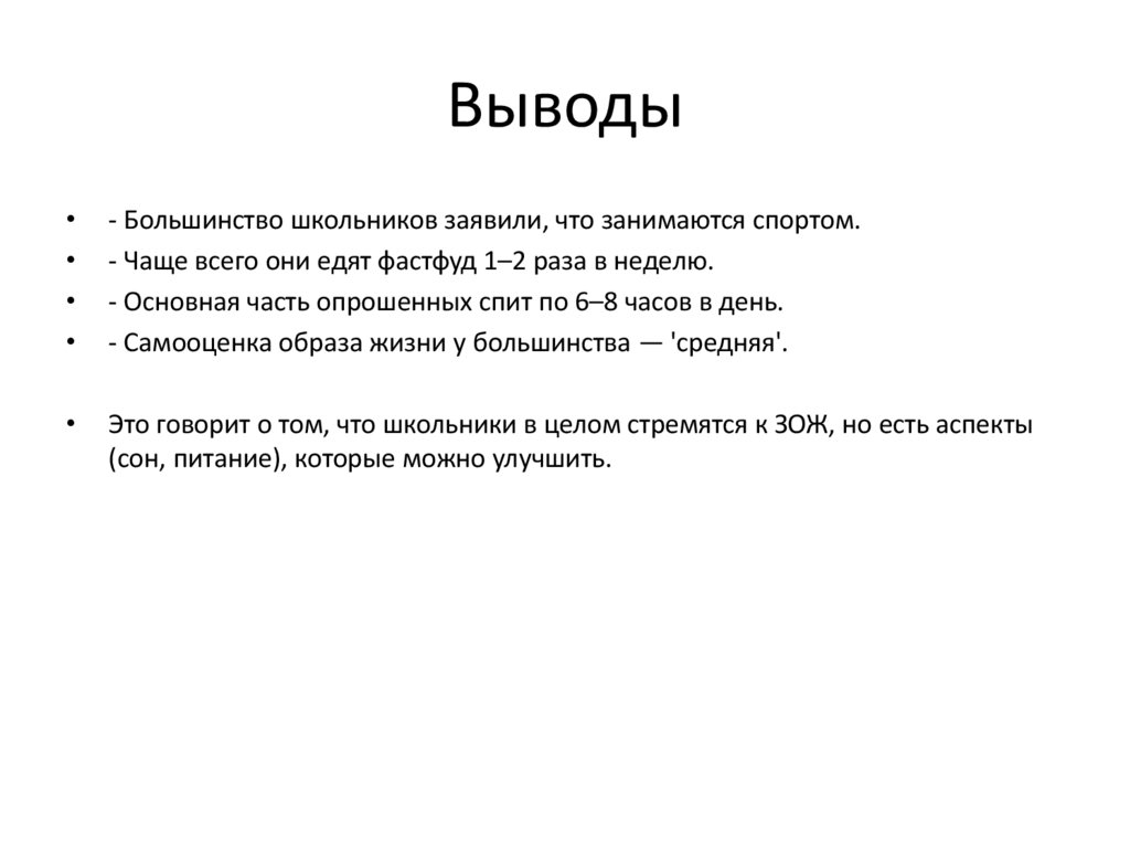 Выводы- Большинство школьников заявили, что занимаются спортом.