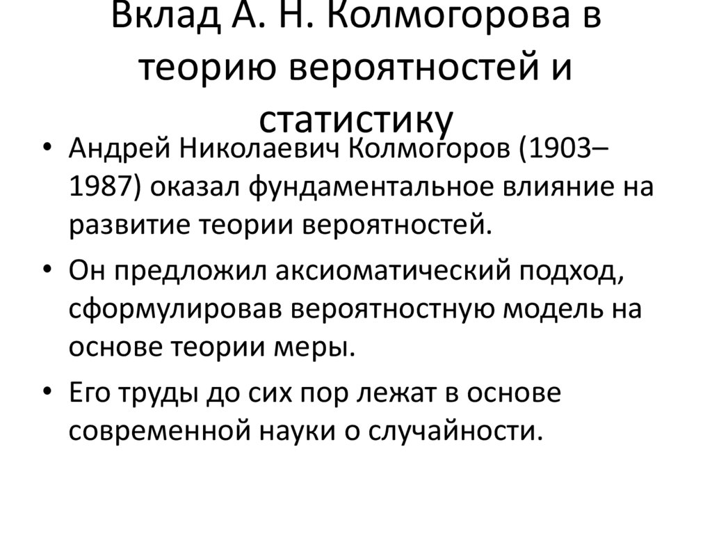 • Его подход сделал теорию вероятностей
